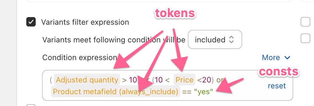 - A condition to include or exclude variant from feed based on its metafield and/or other data
